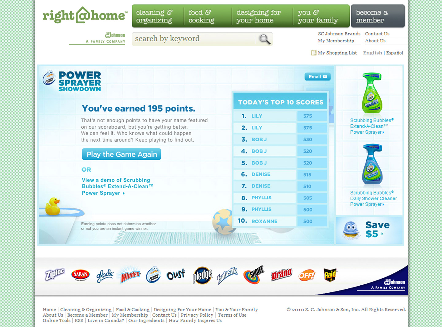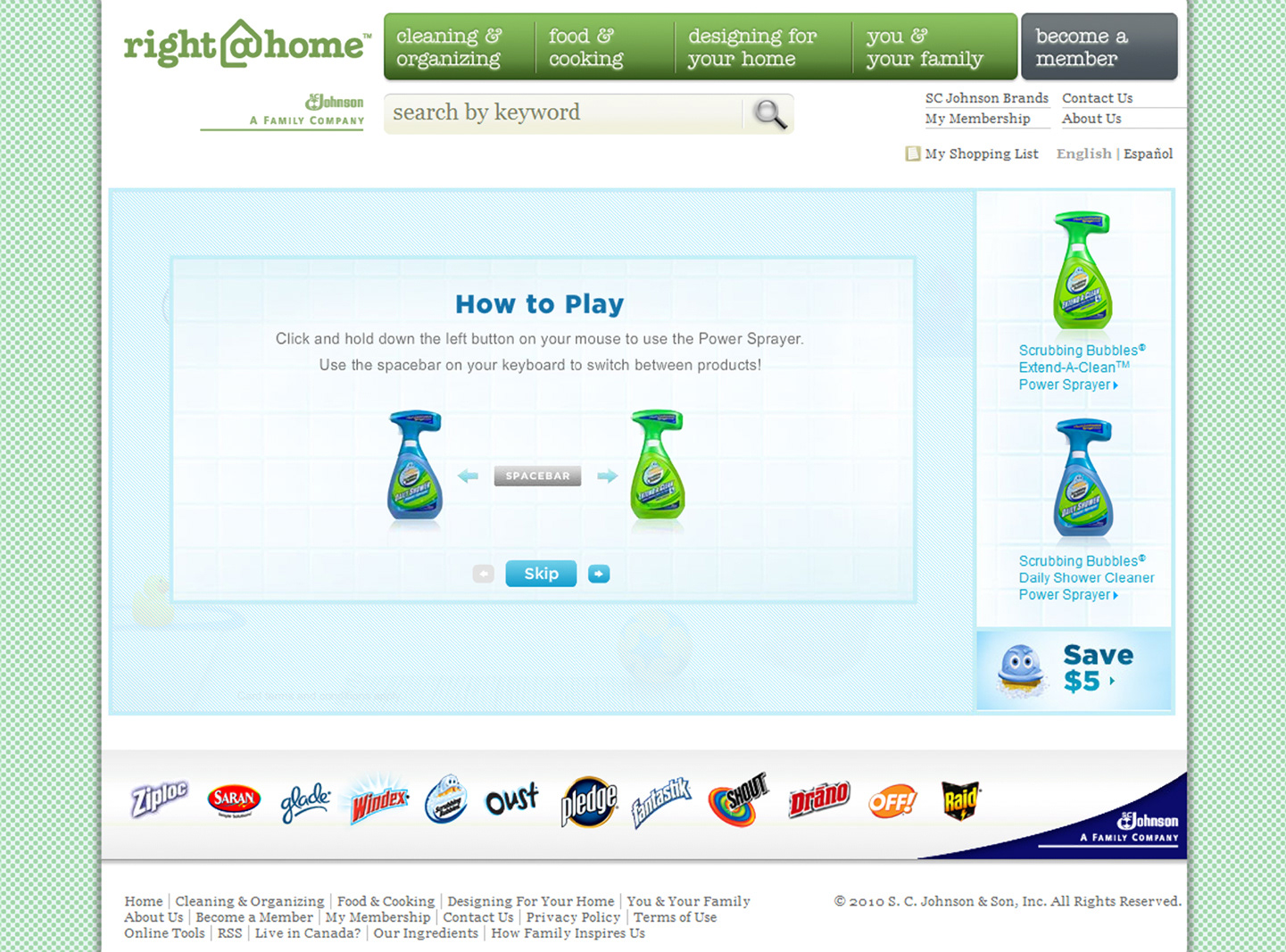 Online game for Johnson & Johnson cleaning products.