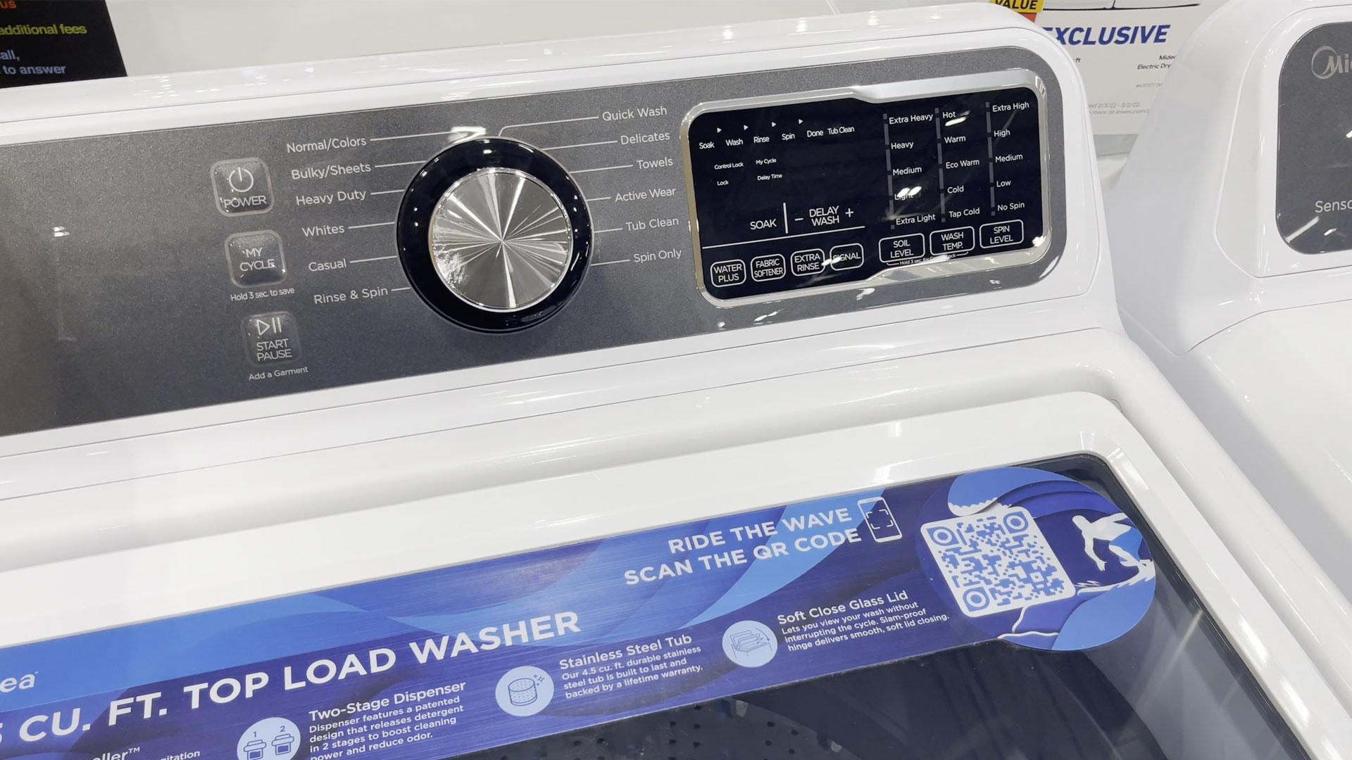 Tow Stage Dispenser – releases in the normal amount of detergent in 2 stages to boost cleaning power and reduce odor.