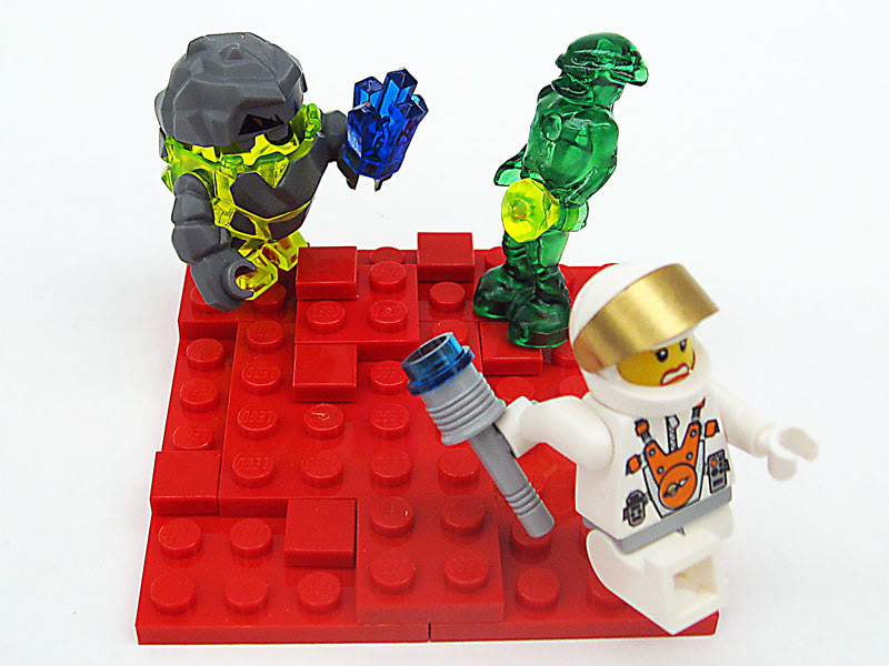 In the early days of designing the games for Power Miners there was much debate as to what the Rock Monsters characteristics would be. Are they mean and truly "monsters" or are they something else. They are the protagonist in the set, but they are playful, fun, and whimsical. Here are a series of photos of the rock monsters to demonstrate their "fun" personality. These photos were not used in any marketing materials that I am aware of.