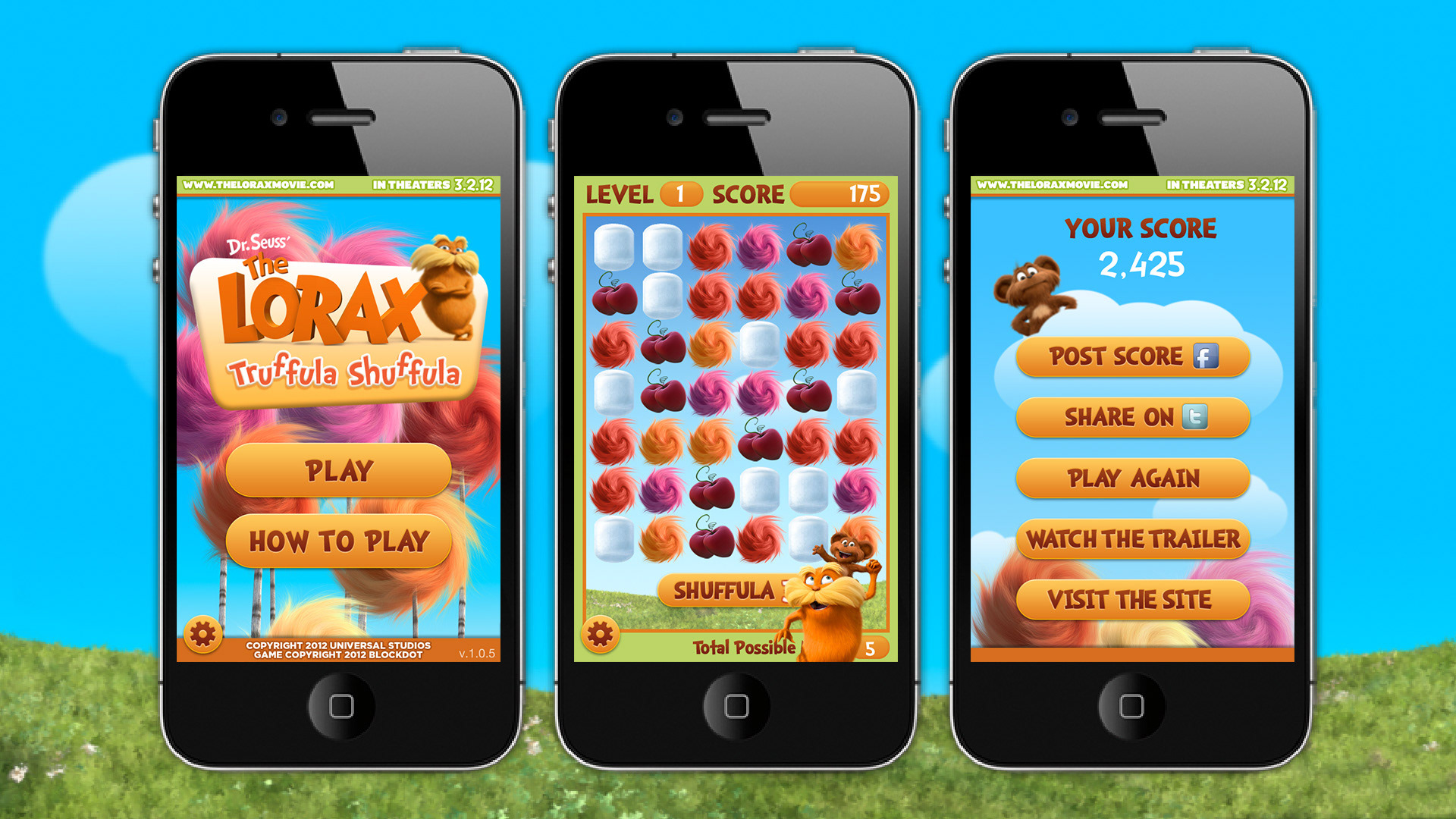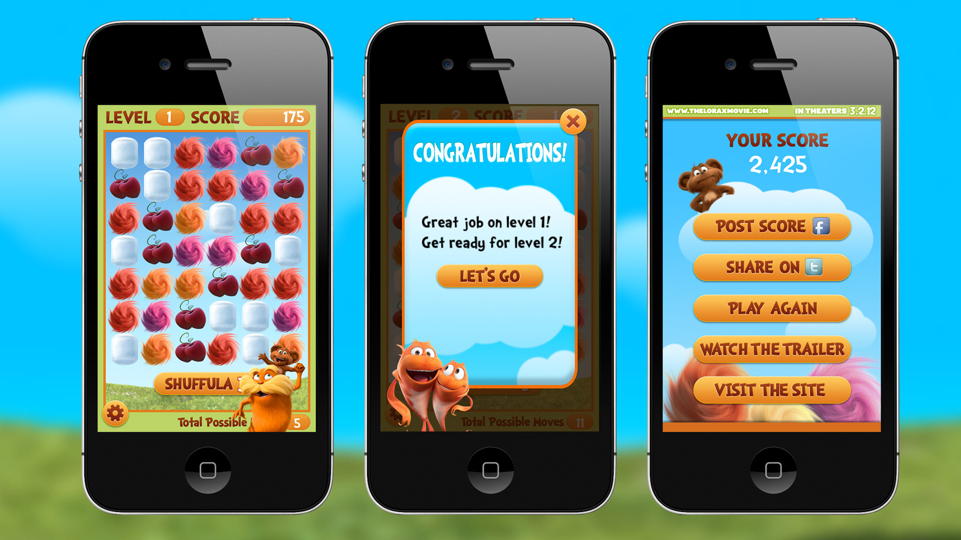 Truffula Shuffula is the official game for Universal Pictures "Dr. Seuss' The Lorax." Designed to build excitement around the movie's release, the game features fast-paced action, cute-as-heck art, social hooks, and access to the movie trailer.