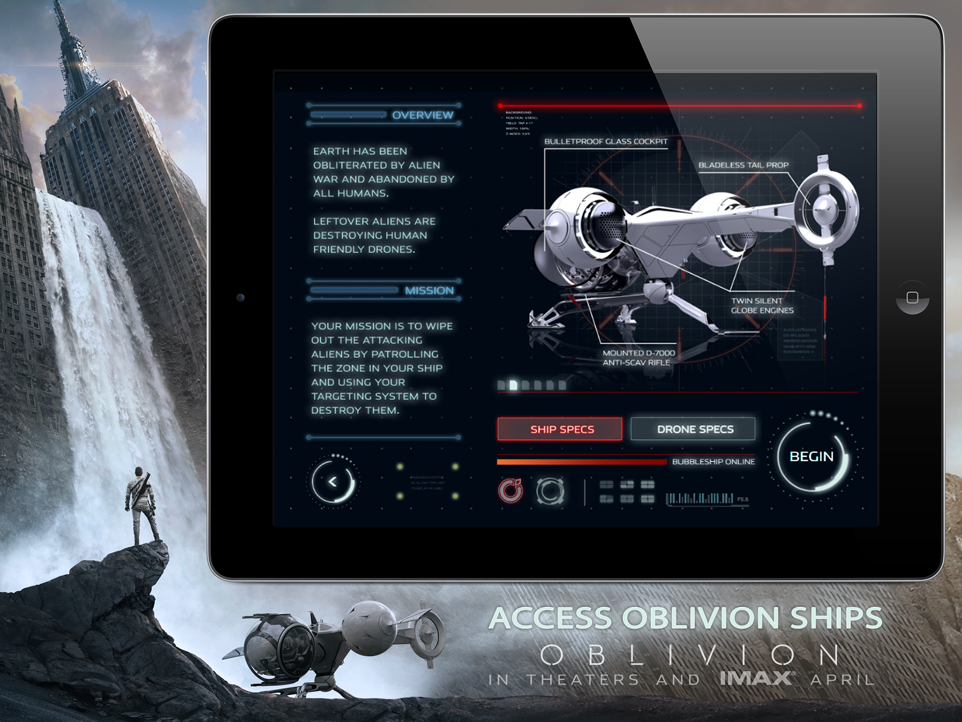 Mobile app for Universal Pictures movie OBLIVION.